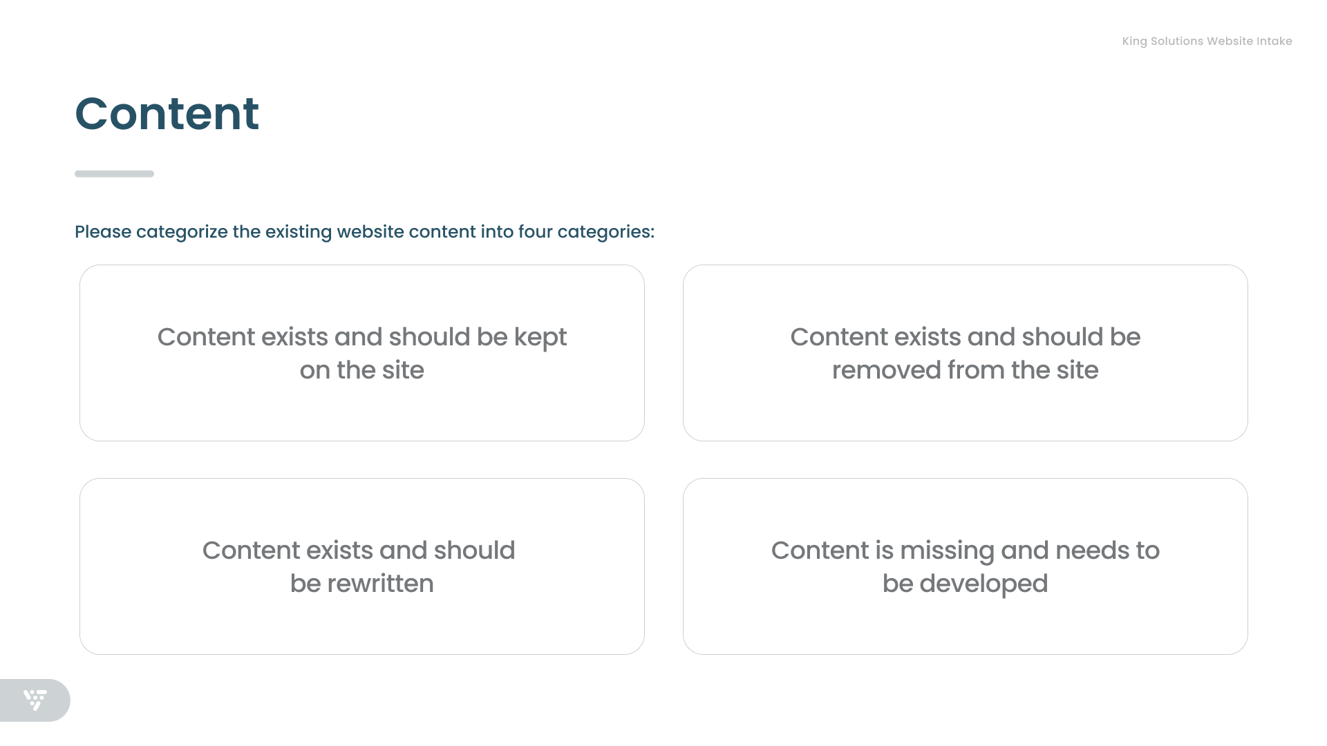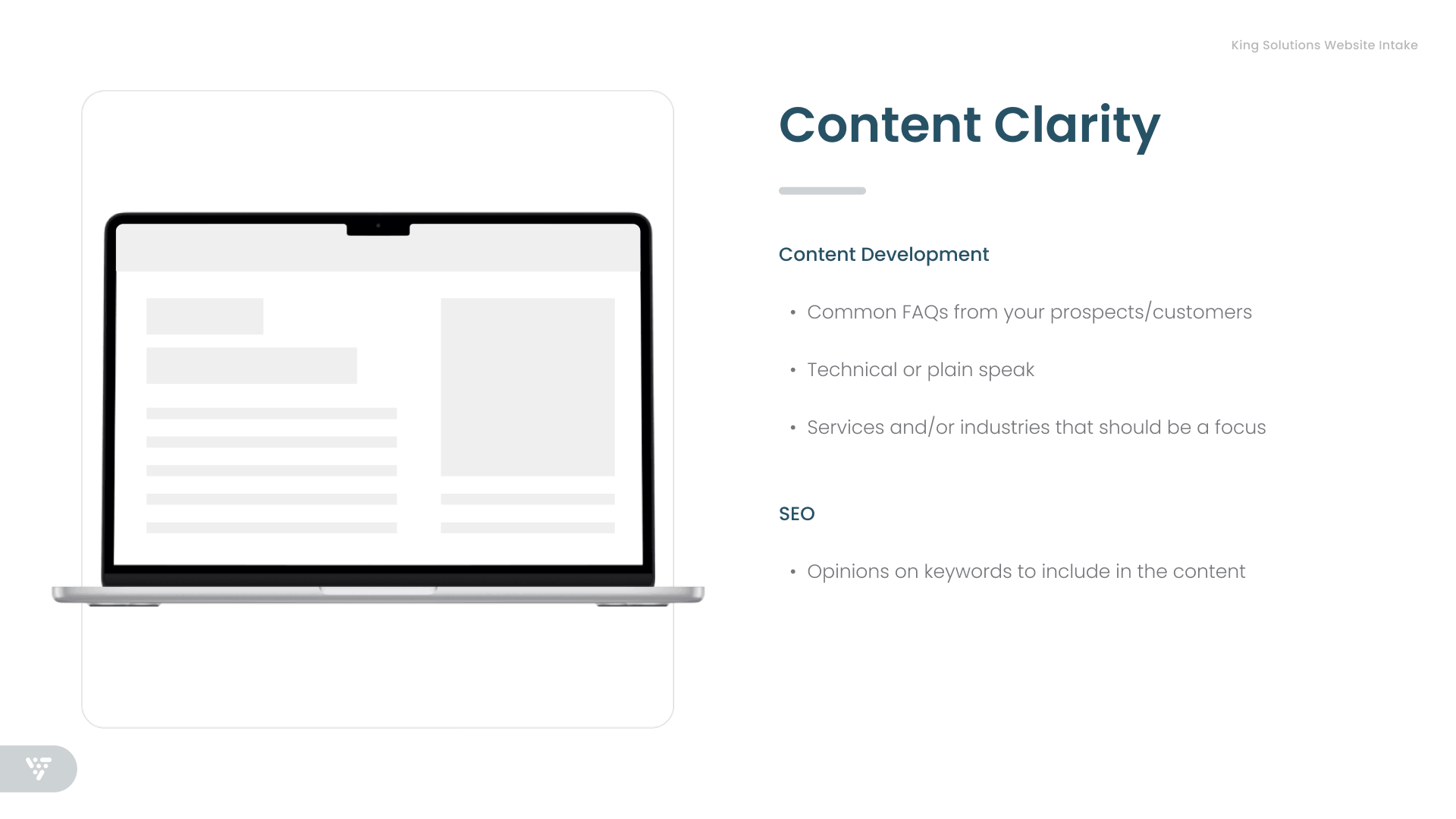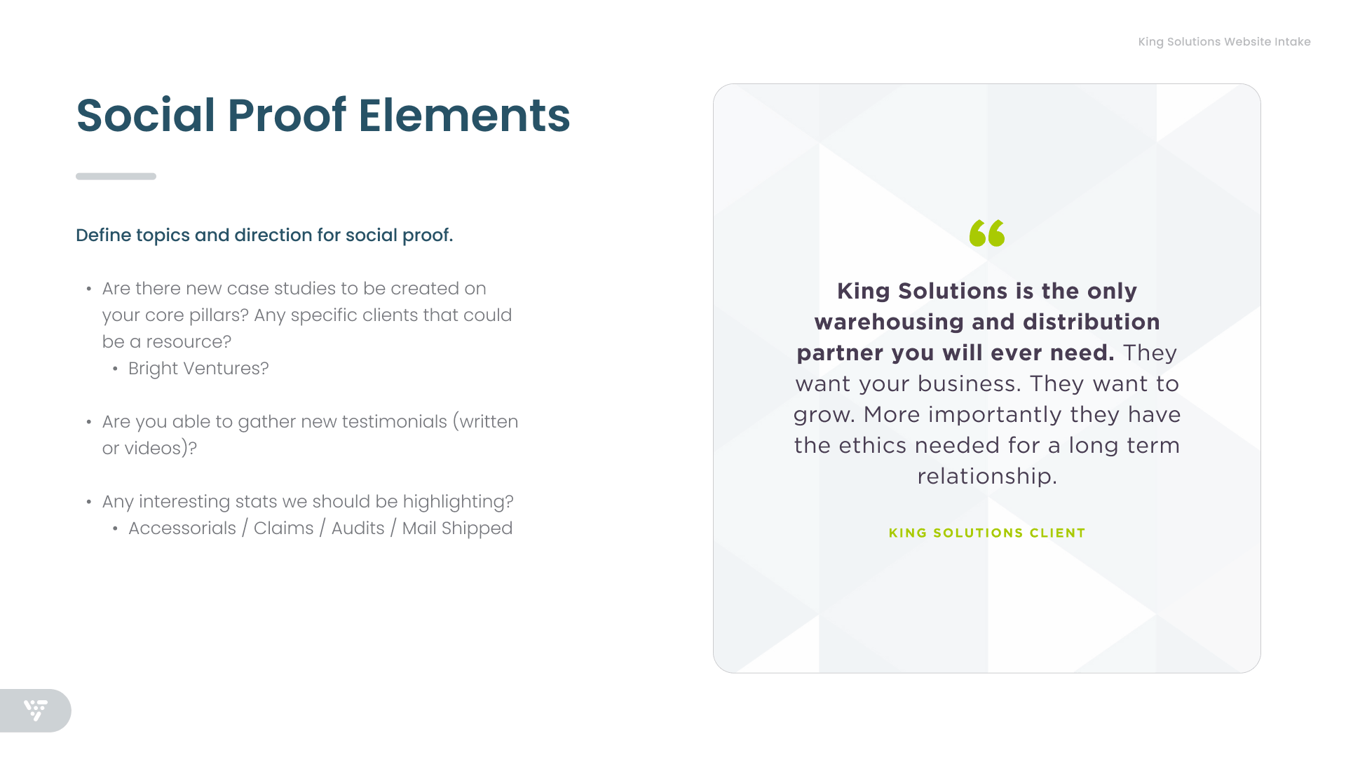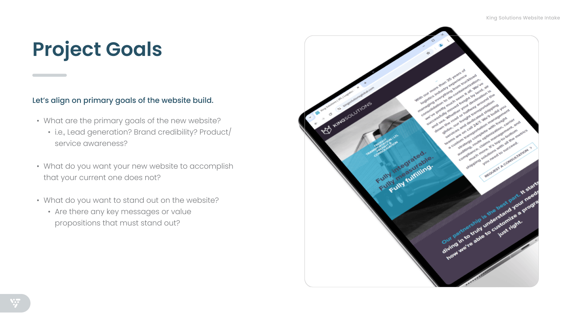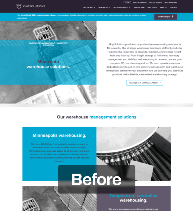 King Solutions had been a client of my agency for multiple years when from 2022–2025 they underwent an ownership transition and then leadership transition. Resulting from this, my team organized a "new client" intake, a revised marketing engagement, and website project in 2025.