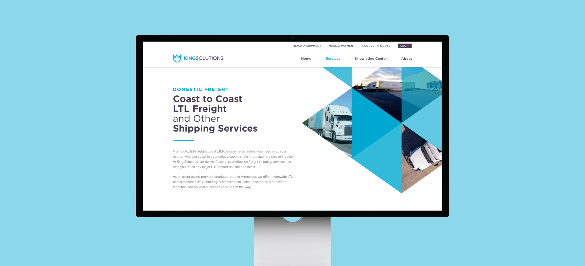 From a visual branding perspective, the client wanted to retain their existing look and color palette, which consisted of four primary brand colors. To bring greater clarity and cohesion to the system, we recommended assigning one color to each service pillar as a visual cue, while reserving their core purple as the unifying brand color used across the broader identity. You can see above how the website follows this color format with purple used for general brand elements, blue used for Transportation & Freight Management, orange used for E-Commerce, and green is used for their Warehousing Services.
