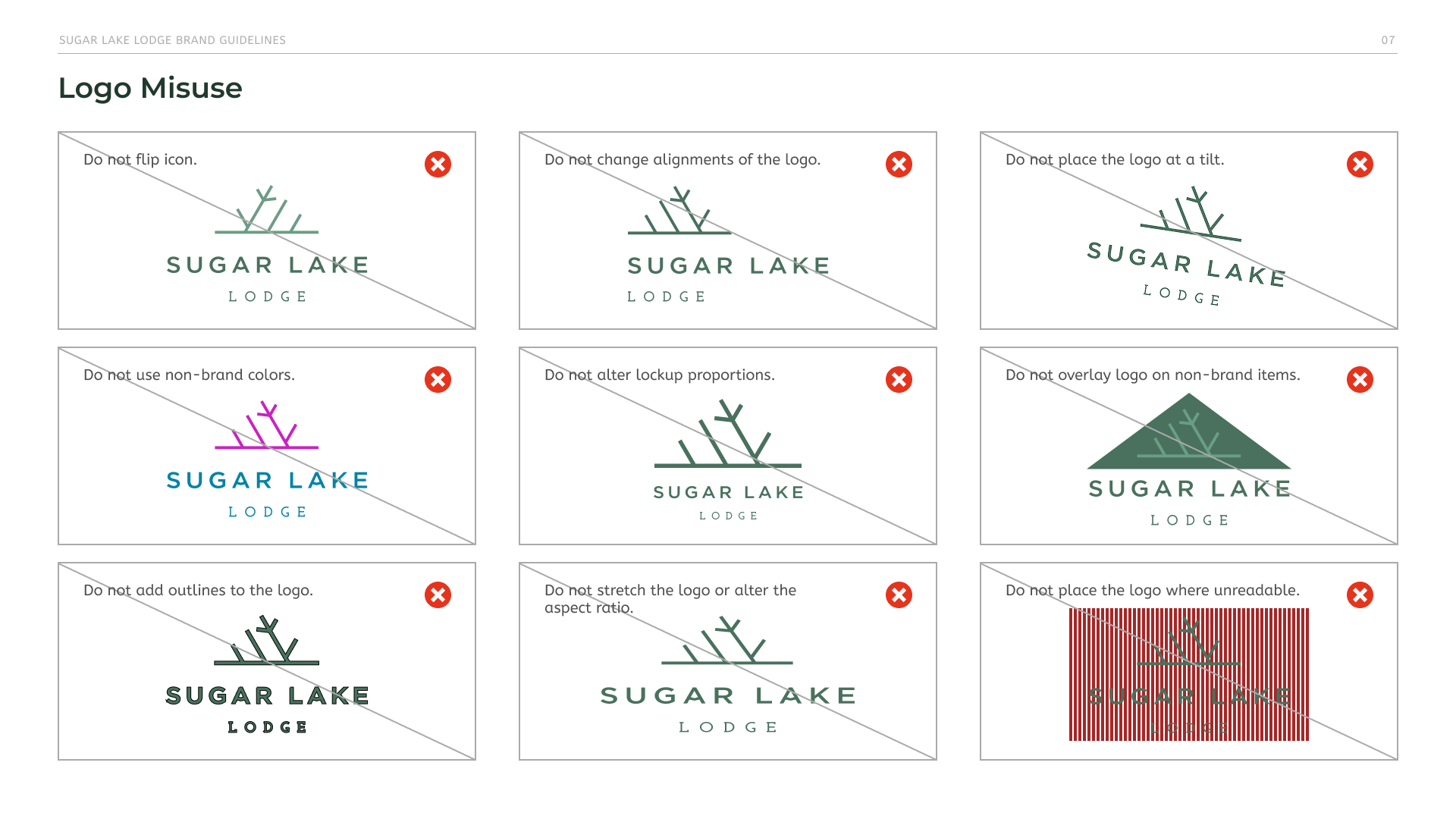 In 2023, I was asked to develop a revised brand identity for Sugar Lake Lodge, a lodge in northern Minnesota dedicated to providing a family-friendly resort experience.
